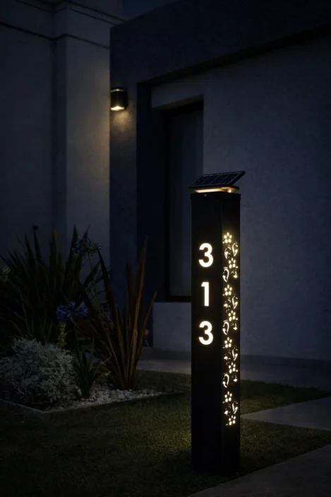 Dale un toque moderno y elegante a la entrada de tu casa con esta columna decorativa con numeración y luz solar, ideal para señalizar la dirección de forma visible y con diseño premium. Fabricada en estructura resistente de acabado negro, incorpora números grandes de alto contraste para una lectura clara desde la calle y un diseño calado decorativo en uno de sus laterales que aporta estilo y personalidad, incluso de día. En la parte superior incluye un panel solar integrado, que permite una iluminación automática nocturna, sin cables, sin consumo eléctrico y sin complicaciones. Perfecta para jardines, frentes de viviendas, locales o entradas privadas, combinando funcionalidad + estética en un solo producto.