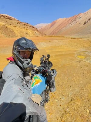 Mi nombre es Gastón Gatto Suárez, nací en San Fernando, Buenos Aires, en el año 1997. Después de sufrir varios hechos de inseguridad, tomamos la decisión con mi familia de irnos a vivir al sur, y en el 2010 nos mudamos a Villa La Angostura. Comencé 1er año de la secundaria en el paraíso que siempre quise vivir, un lugar que conocí a los 8 años cuando realizamos un viaje con mi mama de mucha aventura en un Peugeot 504. Viviendo en Buenos Aires se me dificultaba bastante salir a la vereda a jugar con amigos por el peligro a que me llevaran o quién sabe qué, pero al llegar a este hermoso pueblo de montaña todo cambio. Ese primer verano del año 2010, ya establecidos en Villa La Angostura, es un hermoso recuerdo que hasta el día de hoy me acompaña. Salir con mi bicicleta por la ciudad, comprar un helado, recorrer el centro con la seguridad de que no me iba a pasar absolutamente nada era algo nuevo para mí. Hoy 15 años después agradezco el haber tomado la decisión de emigrar, gracias a que nos animamos a cambiar fue que descubrí una pasión por la naturaleza que desconocía hasta ese momento. Este amor por la flora y la fauna me llevo a convertirme en el año 2016 en guía de trekking, este trabajo me permitió conocer lugares increíbles y despertó en mí el gusto por la fotografía, una profesión que hasta ese momento desconocía. Una vez que comencé con esta actividad no paso mucho tiempo para darme cuenta de que quería abrir un canal de YouTube y compartir ese sentir y esa pasión por la montaña. Es así como en el 2018 abro mi canal compartiendo trekking, aventuras y cosas para hacer en Villa la Angostura. Todo eso me lleva a estudiar marketing digital a distancia a través de una empresa radicada en España. En noviembre del 2019 surge la posibilidad de viajar al país vasco a conocer la empresa con la que me estaba formando y aproveche para documentar los Pirineos españoles, realizando así mi primer viaje solo, donde me doy cuenta de que quiero vivir viajando por las montañas de todo el mundo, porque en ambientes así me siento como en casa. Vuelvo de ese viaje con todas las ganas y una gran deuda detrás porque tarjeteé todo jajaja… y viene la pandemia que me dice “ahora no”, pero me sirvió para prepararme mentalmente y juntar fuerzas. En este tiempo descubro las motos gracias a un amigo que comienza a llevarme y un bendito día me pregunta si la quiero manejar. Desde que puse primera y salí supe que el viaje tenía que ser sobre dos ruedas. Es así como en el 2021 le compro mi primera moto, una XTZ 125, a un seguidor que acaba de mudarse a Villa la Angostura. Comienzo mis primeros pasos haciendo delivery en el pueblo tomando confianza y con el tiempo llega la oportunidad de comprar la moto con la que quería recorrer toda Sudamérica a través de Los Andes, una Royal Enfield Himalayan. Mientras pagaba la nueva moto le di la posibilidad a una amiga de tener su primera moto vendiéndole en 12 cuotas la XTZ. A mí me servía para pagar la cuota de la Royal y a ella también de tener su primera moto. Mientras pagaba a “Andes”, mi Royal Enfield Himalayan Bs6, también trabajaba como relacionista público y comercial en Manzano Resort. Este trabajo surge gracias a entregarle un pedido a un seguidor mientras hacía Delivery. Gracias a esto logro equiparme para crear contenido profesional y equipar la moto con todo lo necesario para iniciar el desafío. A finales del 2023 renunció al trabajo para dedicarme a crear contenido audiovisual y fotográfico para hoteles, marcas, restaurantes y demás lugares turísticos con lo que logro ahorrar para salir a unir Sudamérica a través de Los Andes. El 23 de julio del 2024 inicié la primera etapa de este viaje donde pude recorrer todo el norte de Argentina y parte de Chile. Hoy, 16 de enero del 2025, luego de haber pasado las fiestas en familia, estoy a días de salir nuevamente a la ruta rumbo a Ushuaia, de ahí regresar por la Carretera Austral en Chile y continuar rumbo Brasil, para luego acercarme a los países cordilleranos hasta lograr terminar en el extremo norte de Los Andes en Venezuela.