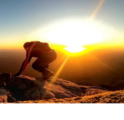 que se ven las tres puntas del cerro junto con el sol cayendo.