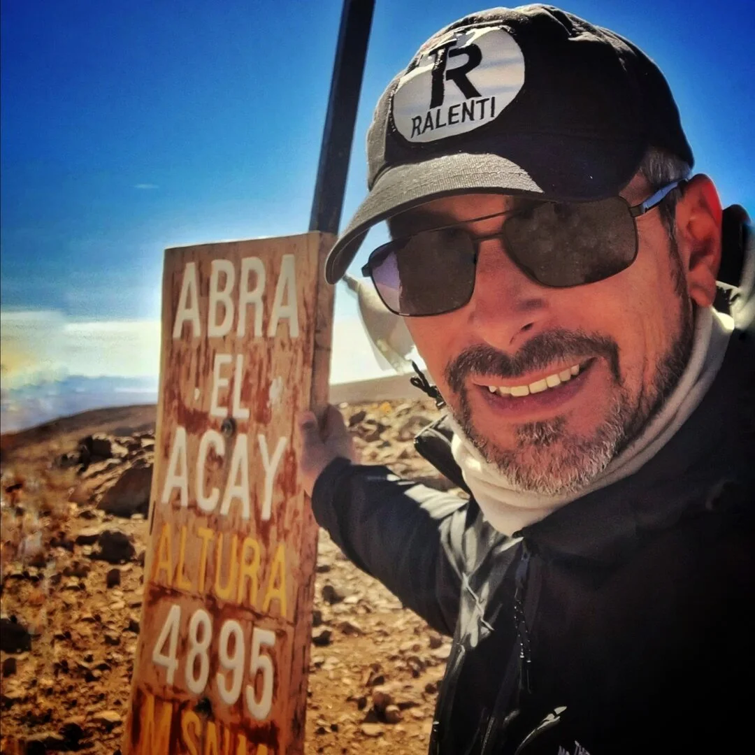 Apasionado de las motos desde que tengo memoria, descubrí este amor arriba de una Puma cuarta serie que mi papá me prestaba para recorrer las calles de mi pueblo natal. Algunos años después, y ya con mucha más pericia comencé a organizar viajes en moto, facilitando al grupo todo lo necesario para que la experiencia sea inolvidable. ¡En algunos viajes llegamos a ser 17 motos! Esta etapa de mi vida duró 10 maravillosos años. Escribí dos libros, junté toneladas de anécdotas y tuve las vivencias más lindas y las más tristes, porque la vida es eso, un eterno equilibrio. Principalmente viajábamos al norte argentino, teniendo además la dicha de cruzar la Cordillera de los Andes en varias oportunidades. Un día, y luego de cambiar tres veces de moto con la premisa de un día terminar la Ruta Nacional N° 40, me lancé al camino y cumplí mi sueño, uniendo al fin La Quiaca con Cabo Vírgenes, el kilómetro cero en el sur de Santa Cruz, mostrándome a mí mismo que viajar solo no tiene comparación. Este inolvidable viaje se coronó de la mejor manera, cuando crucé con el pecho lleno de emoción (y algunas lágrimas en los ojos) las torres de ingreso a la austral ciudad de Ushuaia. ¡Había llegado al Fin del Mundo en moto!. La historia quiso que naciera mi canal de YouTube, hoy con más de 160 videos publicados. Creé mi propia página web con la principal iniciativa de ayudar a que todo aquel que desee viajar, encuentre la información y ayuda necesaria para cumplir su sueño. Hoy RALENTI y su logotipo son marca registrada en el Instituto Nacional de Propiedad Intelectual, demostrando el profesionalismo con el cual he encarado este proyecto. Todo esto nació por la pasión que mi viejo me permitió descubrir, y hoy quiero que todos tengan la oportunidad de experimentar. "Somos personas sencillas que un día salieron a la ruta para cumplir sus sueños".