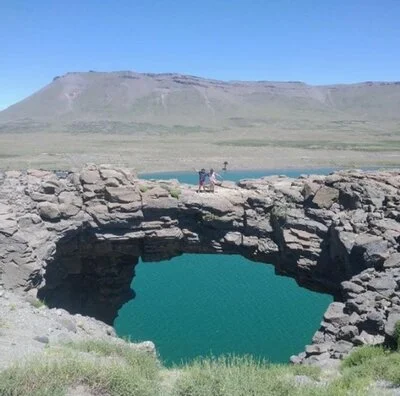 Después de recorrer un camino de ripio y cornisa desde Chos Malal por la ruta provincial 6 hasta El Cholar y bajar por la ruta 21 que pasa por El Huecu y Ñorquin, decidimos seguir la aventura por caminos menos explorados por la ruta 27 hasta la Ciudad de Caviahue. Las luces de las casas detrás del lago agrio nos maravillaron y nos dieron la certeza de que estábamos bien cerquita de la cordillera argentino-chilena. Nos alojamos con “La Calabresa Rodante” en un paraje natural al margen de la ruta 26 donde se permite acampar libremente. Decidimos tomar este lugar como base y desde ahí cada mañana partir a distintos puntos de interés. Uno de los lugares elegidos fue Salto del Agrio, sobre la ruta 27 a 10 km de Caviahue. Posee una imponente caída de más de 45 metros de altura en un cañón formado por la actividad volcánica de miles de años atrás. Otro de los destinos que elegimos fue Puente de Piedra, una geoforma de millones de años y al que se accede bordeando el lago agrio en dirección a Loncopué. Entre lagartijas y piedras con formas extraordinarias caminamos alrededor de una hora para encontrarnos con esta antigua cueva que hoy es puente.