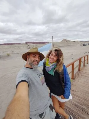 Hola somos Jesi y Pepe y estamos viajando en “La Kangoo” recorriendo distintos lugares de la Argentina. En esta hermosa aventura con nuestro mini camper llevamos con nosotros un bote inflable y dos bicicletas mountain bike. Para uso diario tenemos una cama de plaza y media que diseñamos a medida con los muebles debajo que nos sirven de almacenamiento y guardado. También contamos con un baño seco, una ducha portátil y una carpa baño. Para la energía de todos los días por ahora utilizamos un pequeño panel solar plegable que alimenta los celulares, tablet, cámaras de fotos y luces led. Las linternas solares y a dinamo nos sirven de complemento para las noches. Para encontrar lugares donde dormir con “La Calabresa Rodante” (la Bautizamos así en homenaje a la mamá de Pepe) usamos la aplicación Ioverlander. Siempre tratamos de llegar de día para verificar que sea seguro y, a su vez, tranquilo y rodeado de naturaleza. Cada noche, después de la cena, nos suelen acompañar algunas lecturas de libros que vamos descubriendo en el camino. ¿Cómo nos conocimos?, fue en Lujan, provincia de Buenos Aires. Cada uno tenía experiencias de viaje vividas, con un objetivo en común: elegir esta vida nómade. Nuestro objetivo es conocer todo nuestro país de punta a punta, parando en cada pueblito, interiorizándonos en las diferentes culturas y relacionándonos con las personas de cada lugar. Nuestra idea es sustentar los viajes en base a lo que nos dedicamos cada uno (Jesi es Acompañante Terapéutica y Pepe Periodista y Profesor de Informática) y también de la venta de artesanías y productos. Otro proyecto que estamos por realizar es el de hacer entrevistas a bordo de nuestra pequeña casita rodante con artistas y personalidades de cada lugar.SEGUINOS EN NUESTRAS REDES